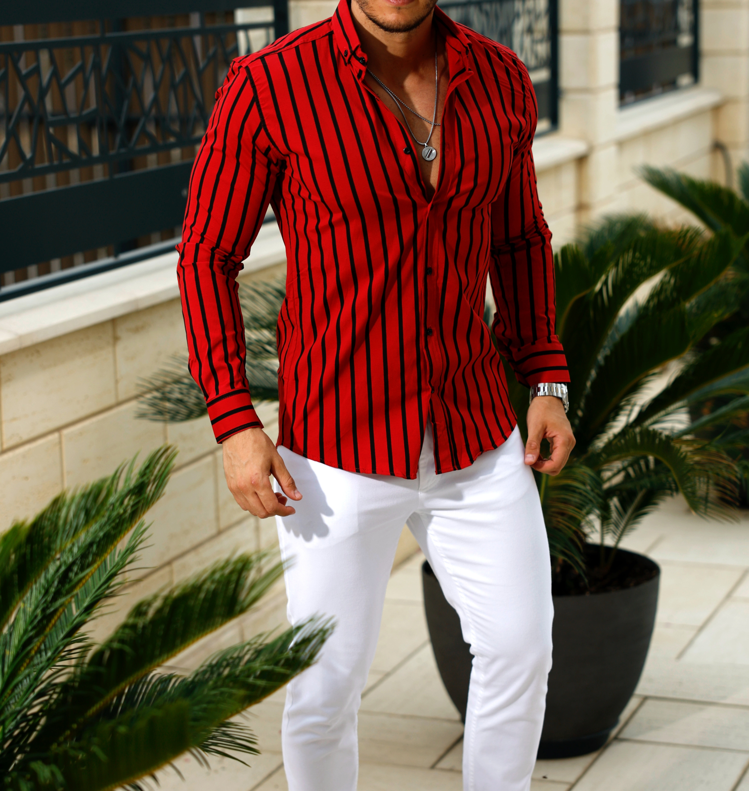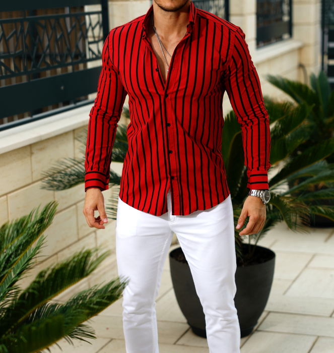 Camasa rosie cu dungi subtiri negre, un design modern si vibrant, ideal pentru a adauga un plus de energie tinutelor tale. Potrivita atat pentru un look casual, cat si pentru ocazii mai speciale, aceasta camasa imbina perfect stilul clasic cu un twist contemporan. Fabricata din materiale confortabile, este o piesa versatila care se remarca prin simplitate si rafinament.